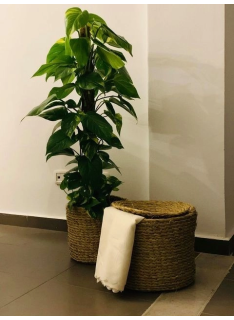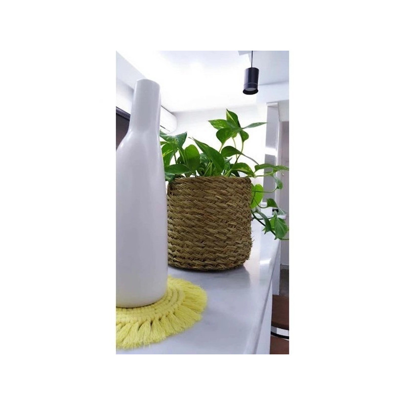 Cache pot en Halfa naturelle, fabriquée artisanalement.