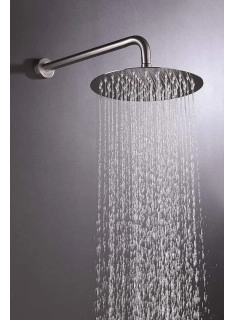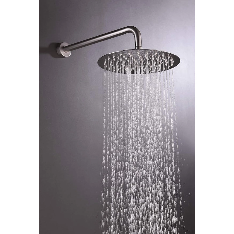 Il s'agit d'une pomme de douche murale ronde avec un bras de douche