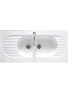 Evier à poser réversible de 120x60 cm 2 Bacs +2 égouttoires