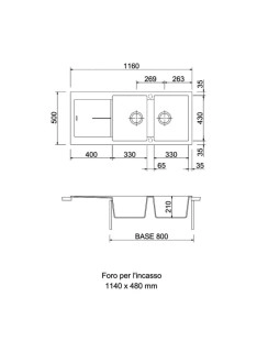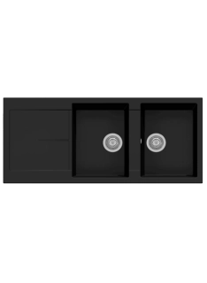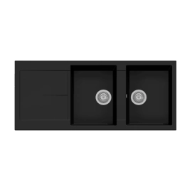 L'évier de cuisine Plados Telma NF11620 de couleur noir mat appartient à la ligne INFINITY, il est fabriqué avec le matériau exclusif microULTRAGRANIT, mesure 116x50 cm et possède deux réservoirs de 21 cm et un égouttoir réversible.