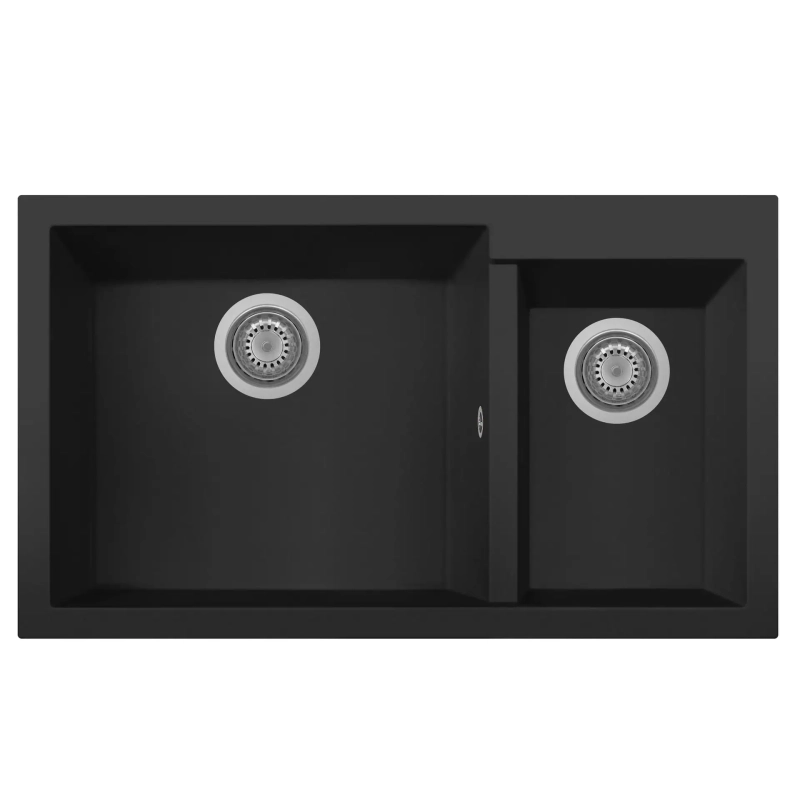 EVIER DE CUISINE EN MICRO ULTRAGRANIT 2 BAC 860x500 mm-90cm ONE NOIR MATT