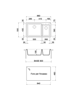 EVIER DE CUISINE EN MICRO ULTRAGRANIT 2 BAC 860x500 mm-90cm ONE BLANC LAIT