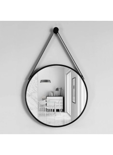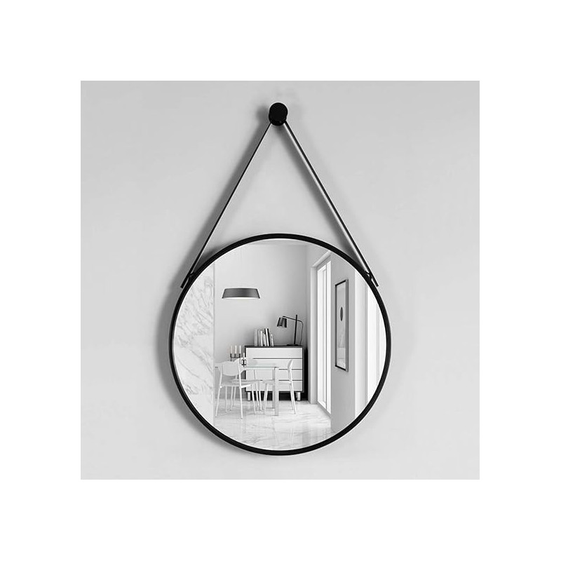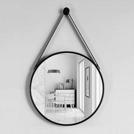 Miroir suspendu rond décoratif avec sangle lumineux LED couleur Noir