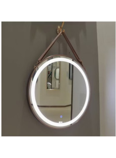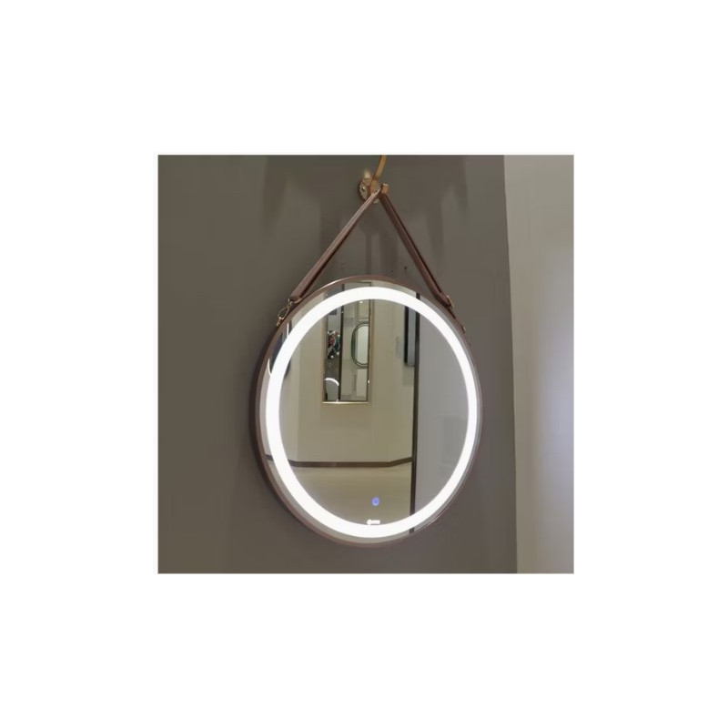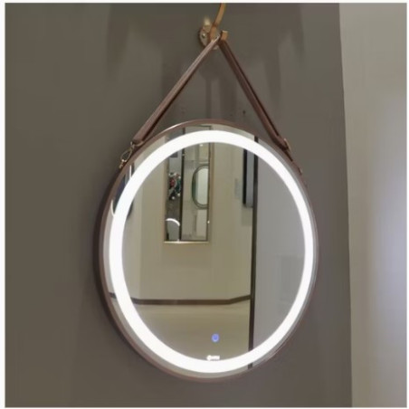 Miroir suspendu rond décoratif avec sangle lumineux LED couleur Rosé