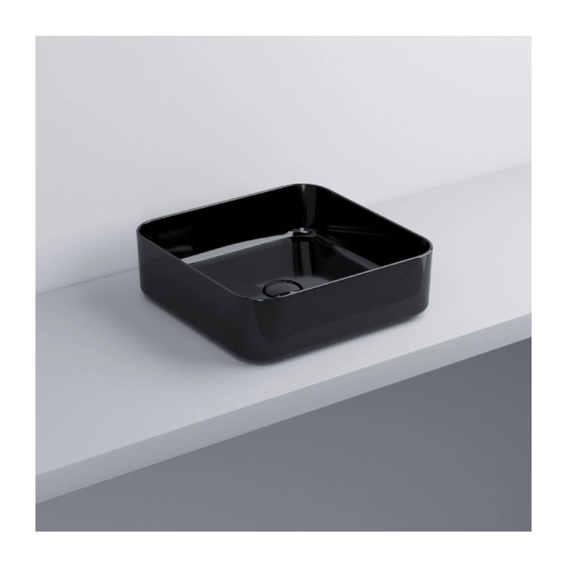 Description Du LAVABO A POSER 40 cm CARRE SMASH NOIR MATT